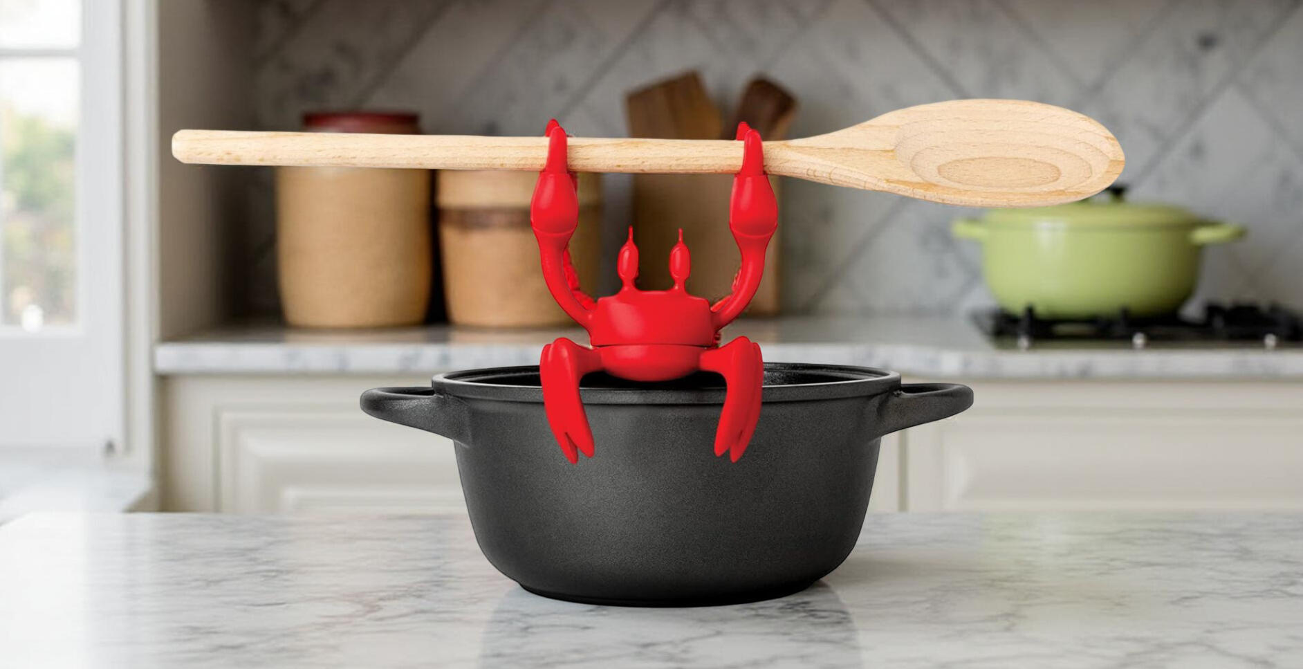 Keeps your spoon off the counter while you cook and looks great doing it. This heat-resistant silicone crab sits by your pot and holds utensils to prevent mess and spills.