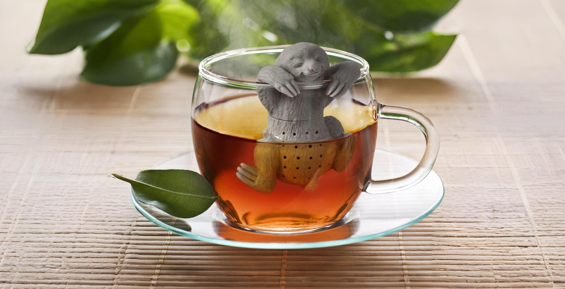 A slow brewing sloth that hangs out in your mug while your tea steeps. Made from reusable silicone, it’s a simple, reusable way to brew loose leaf tea without the usual mess.
