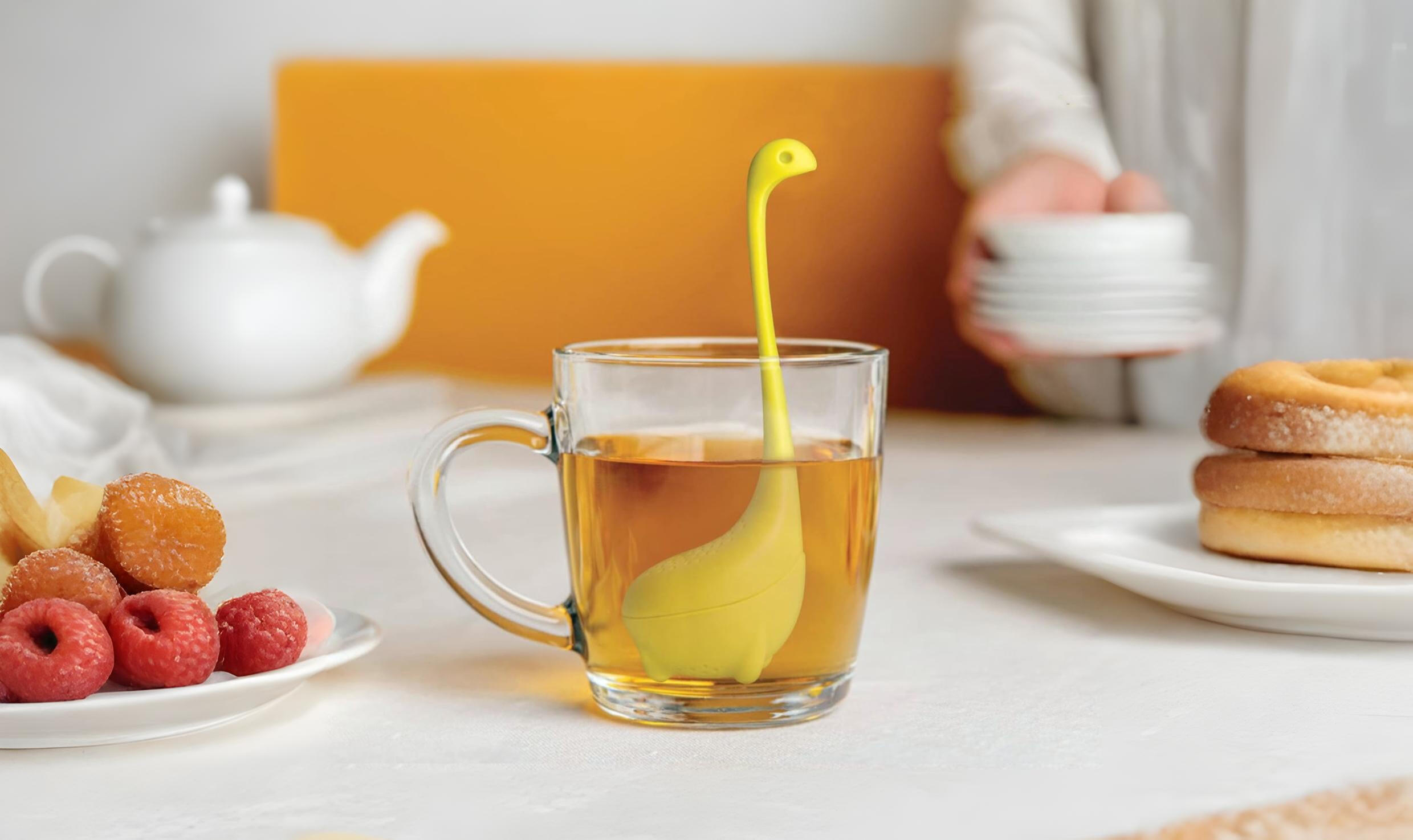 A reusable loose leaf tea infuser that sits inside your mug while your tea steeps. Easy to clean, fun to look at and a practical alternative to disposable tea bags.